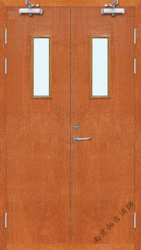 木質雙扇帶玻璃防火門 (加觀察窗型)通常適用于需要良好的透光性的部位,是在防火門門扇中鑲嵌防火玻璃的一種做法,玻璃尺寸可根據客戶需要制作;產品多數使用在商場、學校、KTV、醫院、機房等場所。